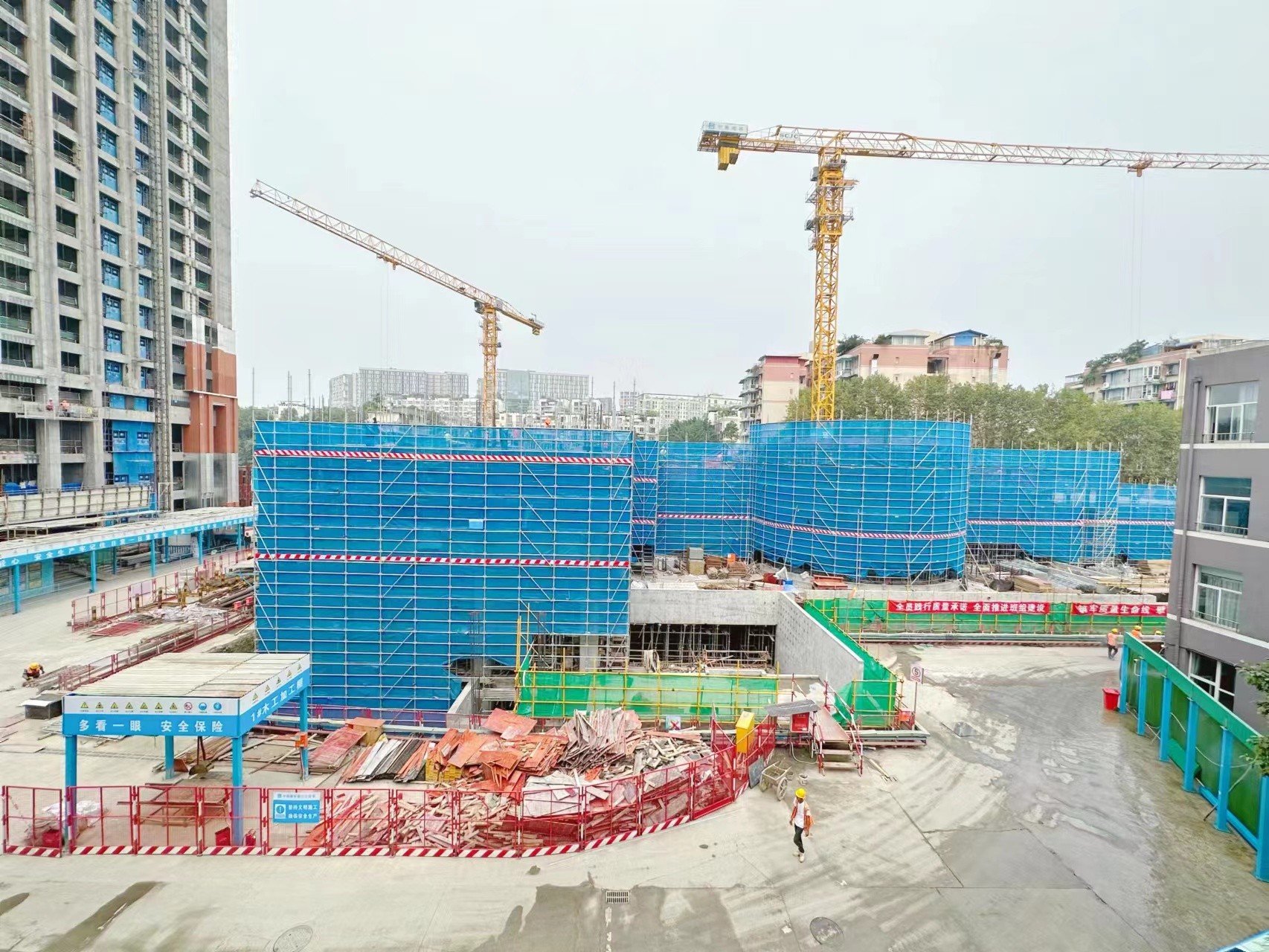 9月29日,中秋国庆“双节”假期正式开始,在位于成都市青羊区的四川长征干部学院总部建设项目现场,吊塔林立、机器轰鸣,200余名工人坚守岗位,抢抓施工“黄金期”。
